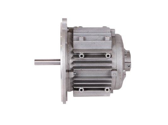 Асинхронный трехфазный двигатель мощностью 370 Вт работает от сети 220-240 В, 50 Гц. Собран в корпусе из алюминиевого сплава, что обеспечивает эффективное косвенное охлаждение. Оснащен широкими ребрами охлаждения для отвода тепла.
