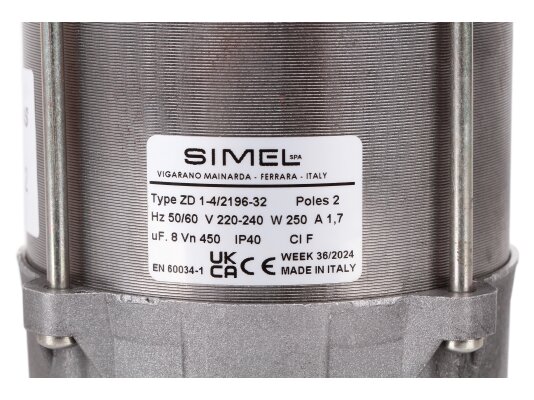 По своим характеристикам итальянский электромотор Simel ZD 1-4/2196-32 с асинхронным типом работы и потребляемой мощностью 250 Вт оптимально подходит для комплектации отопительных горелок с принудительным наддувом. Устройство оборудовано короткозамкнутым ротором, что обусловливает высокую производительность, и подключается к однофазной бытовой электросети с напряжением 220-240 В.