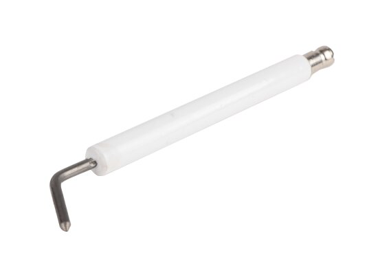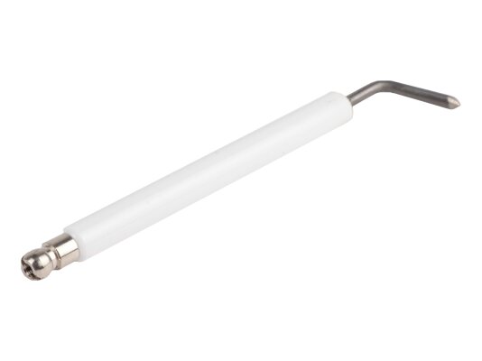 Электрод поджига 113 мм артикул: 2080257 используется в устройствах розжига горелки. Конструкция состоит из металлического стержня с керамическим корпусом, выступающим в качестве электрической изоляции. Размер фиксированной изоляции O8х80 мм. Высоковольтное напряжение поступает от трансформатора через кабель поджига, присоединяемый через штекер O6 мм.