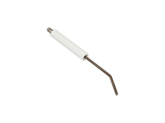 Электрод поджига 122,2 мм, артикул: 2080259-CU используется для образования искры и воспламенения топлива при запуске горелки. Металлическая часть защищена фиксированной изоляцией O11 X 80 мм для безопасной эксплуатации теплогенерирующей установки. На электрод подается напряжение от повышающего трансформатора через кабель поджига, присоединяемый с помощью штекера O4 мм.