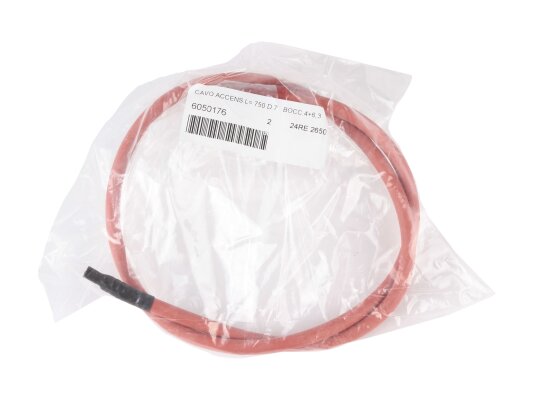 Кабель поджига CIB Unigas 720 мм, арт: 6050176 служит в качестве проводника высоковольтного тока. Соединяется с трансформатором и запальным электродом. Функцией является подача на электрод розжига электрического тока, с помощью которого поджигается топливовоздушная смесь. Токопроводящая жила защищена силиконовым каучуком для защиты от температурных и механических воздействий, безопасной эксплуатации узла поджига. Для присоединения к трансформаторному блоку и электроду на обоих концах предусмотрены штекерные разъемы O6 мм и O4 мм. Общая длина провода – 0,72 м, диаметр – 7 мм. Кабель изготовлен по европейским стандартам электробезопасности.