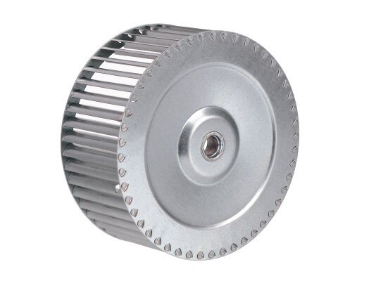 Рабочее колесо вентилятора O146 x 62 мм принимает на себя большую нагрузку при работе вентилятора. Вращаясь, образует воздушный поток для подачи на горение. Колесо оснащено лопатками, зафиксированными под углом для получения наибольшего эффекта. Колесо является оригинальным комплектующим от компании Cib Unigas для сборки и ремонта вентиляторных горелок.